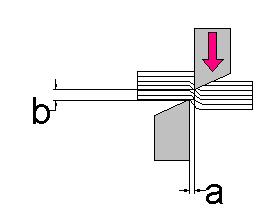 Les jeux a et b, sont fonction de l’épaisseur à cisailler. Par le changement rapide des porte-outils, ou par leur rotation, l’opérateur peut inverser la position des lames, afin de reporter la déformation, sur l’un ou l’autre des bords